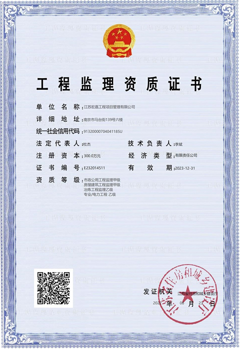 工程監(jiān)理資質(zhì)證書(shū)